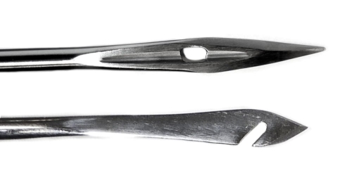 igła ta wyglądem przypomina zwykła igłę krawiecką do szycia.