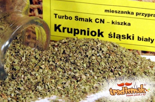 UWAGA - możliwa zamiana mieszanki - do krupnioków białych (bez krwi) można zastosować mieszankę przypraw pn. "Dobry Smak Krupniok śląski " stosując 0,125 g (opakowanie) / 5 kg wyrobu w miejsce Krupniok śląskim biały (Turbo Smak CN). Wówczas nie należy dodawać ziela angielskiego i cebuli.